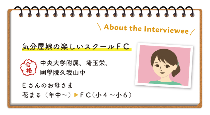 今回は、中央大学附属、埼玉栄、國學院久我山中に合格したEさんのお母さまの体験談をご紹介します。