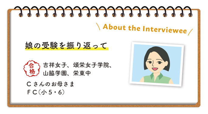 今回は、吉祥女子、頌栄女子学院、山脇学園、栄東中に合格したCさんのお母さまの体験談をご紹介します。